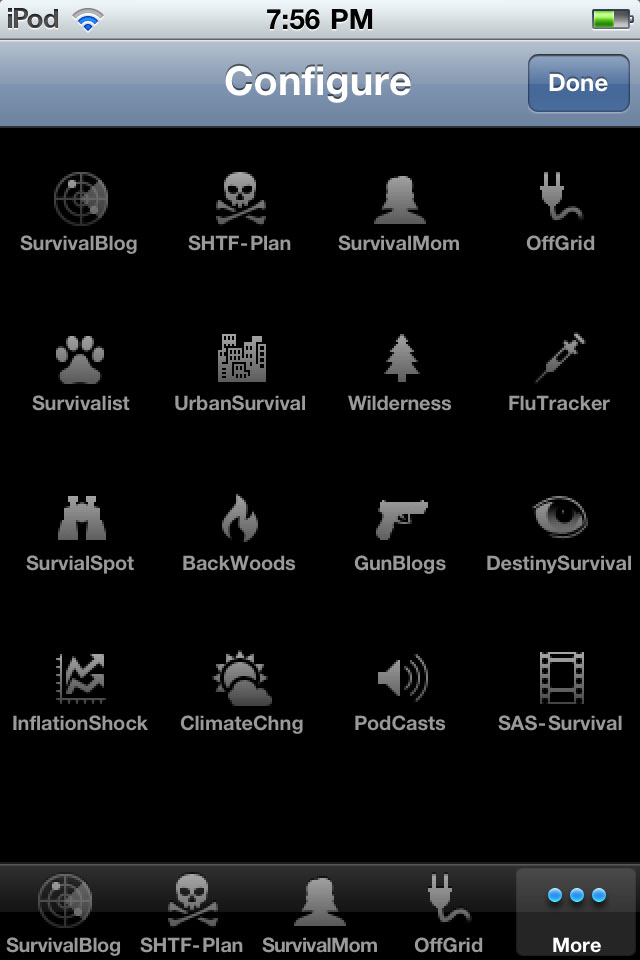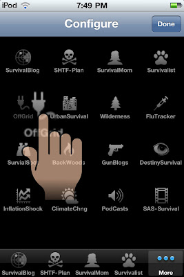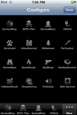 This app identifies several RSS feeds dealing with the subjects of "survival", "emergency preparedness", "flu - pandemic" and "financial news" then updates the data every time you are connected to the web (WiFi/3G connection is a must) and run the application. By combining all these feeds into a simple and easy to use application that displays the text in large format on your iPhone, iTouch, or iPad, you can quickly keep up with what's going on at these sites without having to browse, zoom-in, read, pan, zoom-out, scroll, zoom-in, read, pan, zoom-out.... you get the point.